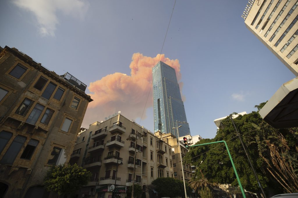 A cloud from a massive explosion is seen in in Beirut, Lebanon, Tuesday, Aug. 4, 2020. Massive explosions rocked downtown Beirut on Tuesday, flattening much of the port, damaging buildings and blowing out windows and doors as a giant mushroom cloud rose above the capital. Witnesses saw many people injured by flying glass and debris. (AP Photo/Hassan Ammar)