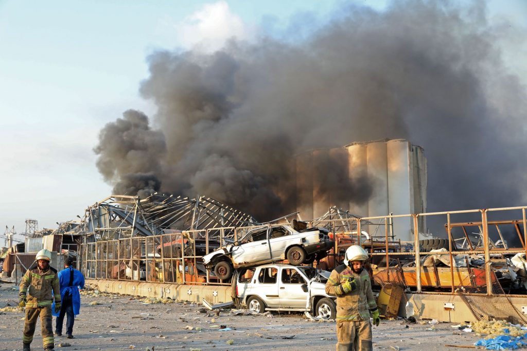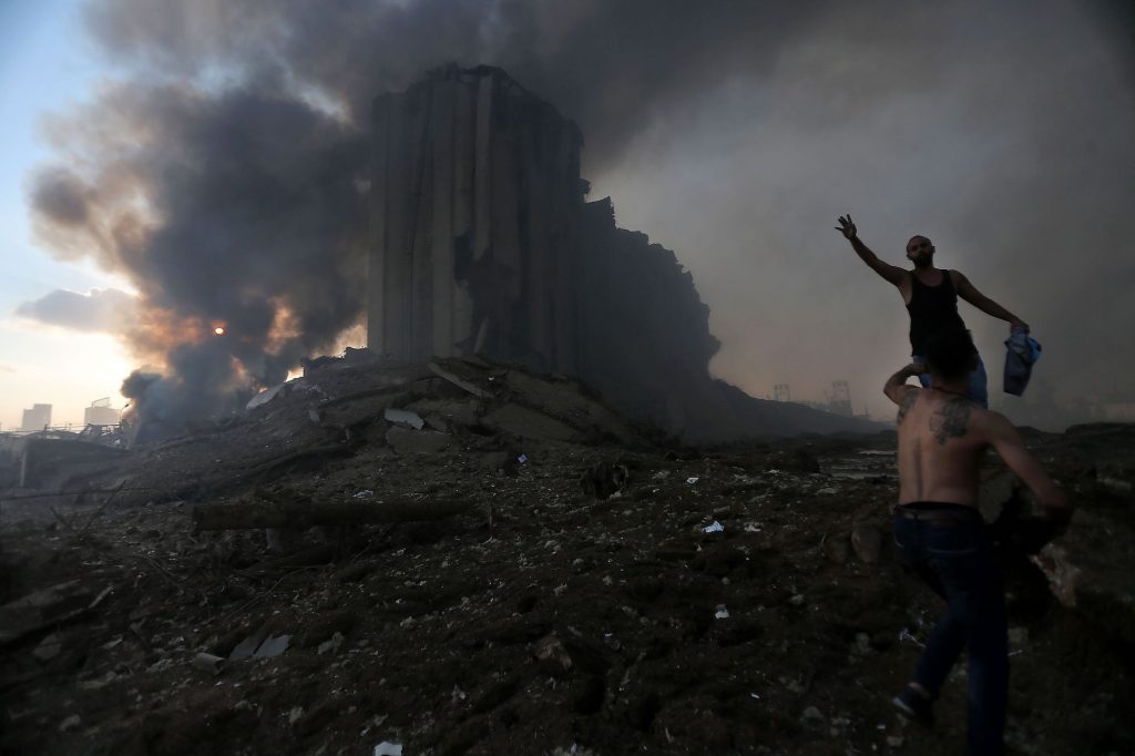 EDITORS NOTE: Graphic content / A picture shows the scene of an explosion at the port in Beirut on August 4, 2020. – Two huge explosion rocked the Lebanese capital Beirut, wounding dozens of people, shaking buildings and sending huge plumes of smoke billowing into the sky. Lebanese media carried images of people trapped under rubble, some bloodied, after the massive explosions, the cause of which was not immediately known. (Photo by ANWAR AMRO / AFP) (Photo by ANWAR AMRO/AFP via Getty Images)